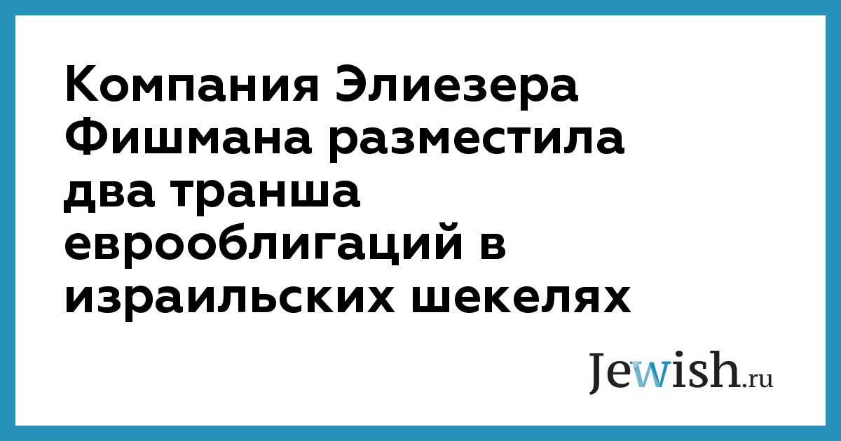 Компания Элиезера Фишмана разместила два транша еврооблигаций в израильских шекелях