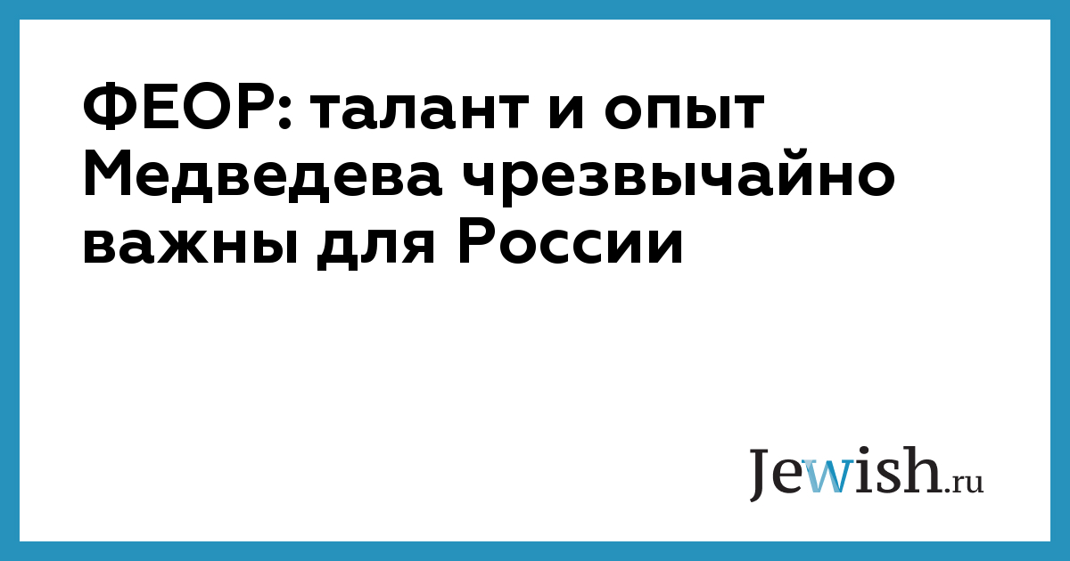 ФЕОР: талант и опыт Медведева чрезвычайно важны для России