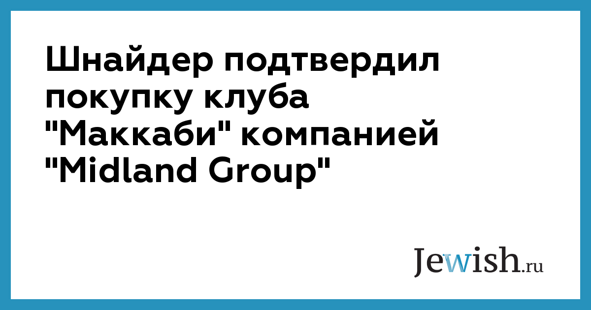 Шнайдер подтвердил покупку клуба "Маккаби" компанией "Midland Group"