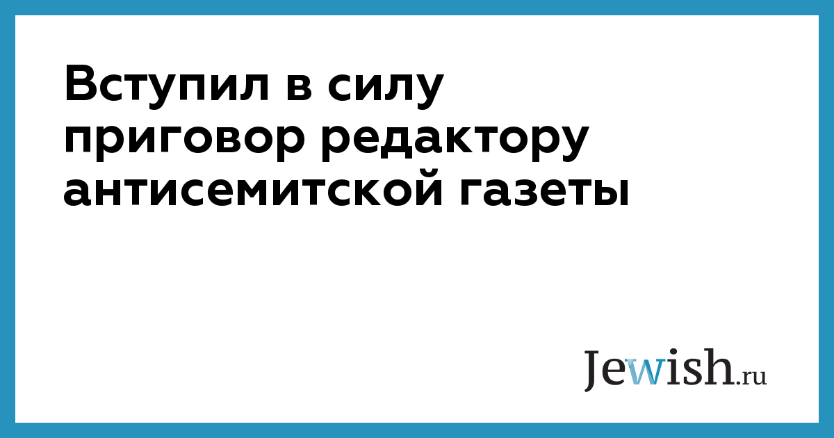 Вступил в силу приговор редактору антисемитской газеты