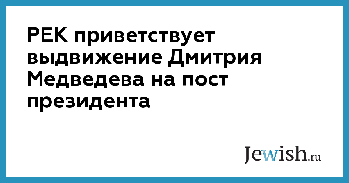Российский еврейский конгресс приветствует выдвижение первого вице-премьера Правительства Российской Федерации Дмитрия Медведева кандидатом на должность президента Российской Федерации.