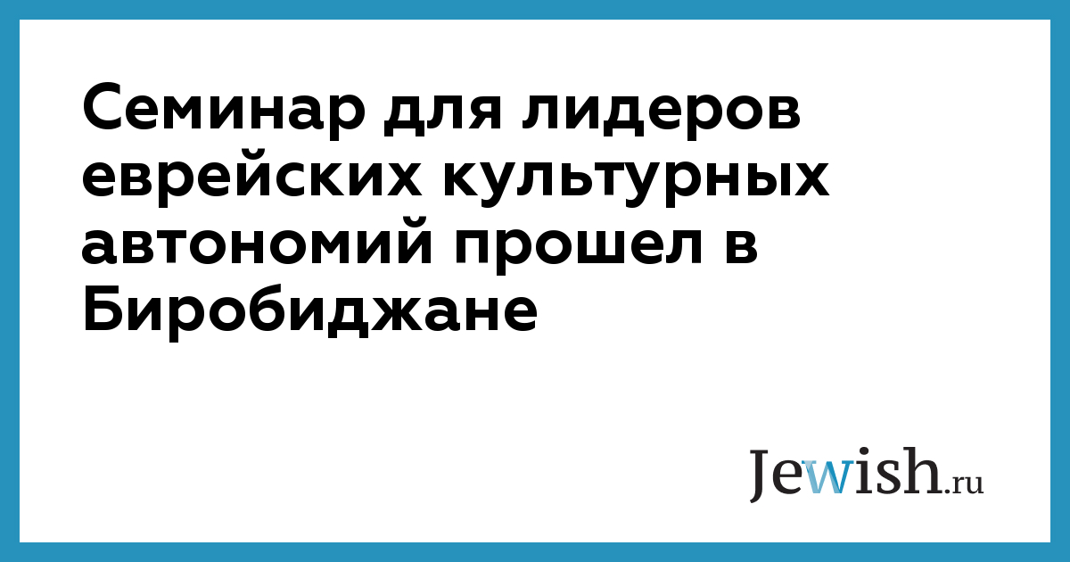 Об уникальном статусе Еврейской автономной области и возможных путях сотрудничества и взаимодействия говорили участники семинара для руководителей региональных и местных еврейских национально-культурных автономий (НКА) Сибирского и Дальневосточного регионов России, пишет газета "Биробиджанер штерн".