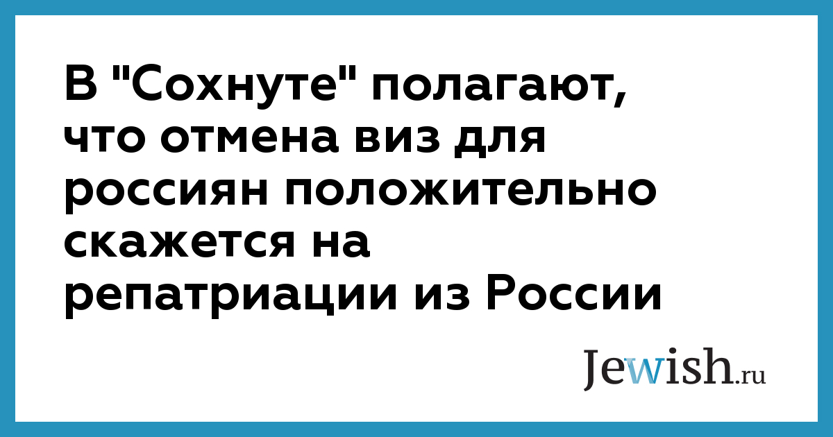 Важно добавить, что так — же в США, Германии, Канаде и Австралии проживают десятки тысяч русскоязычных евреев, имеющих российское гражданство и не получивших ещё гражданство стран проживания. Отмена виз из России упростит приезд в Израиль для них тоже.