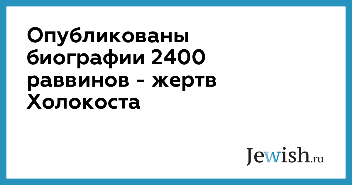 В честь 10 Тевета, общественного еврейского поста, в который также читается Всеобщий Кадиш — поминальная молитва в память о погибших евреях — в интернете опубликована книга, в которой собраны краткие биографии 2400 раввинов, ставших жертвами Холокоста. Об этом сообщает "Седьмой канал".