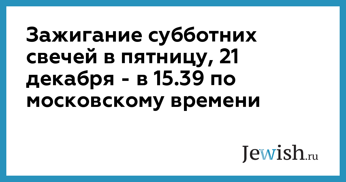 Зажигание субботних свечей в пятницу, 21 декабря — в 15.39 по московскому времени
