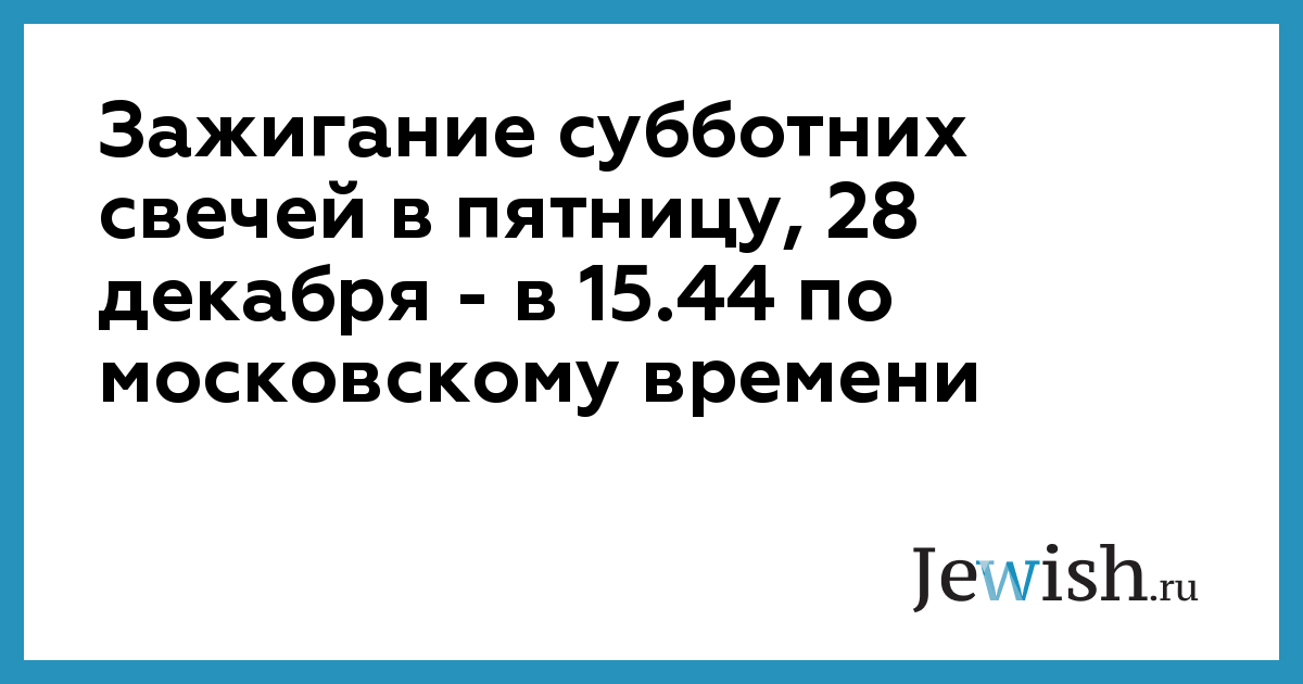 Зажигание субботних свечей в пятницу, 28 декабря — в 15.44 по московскому времени