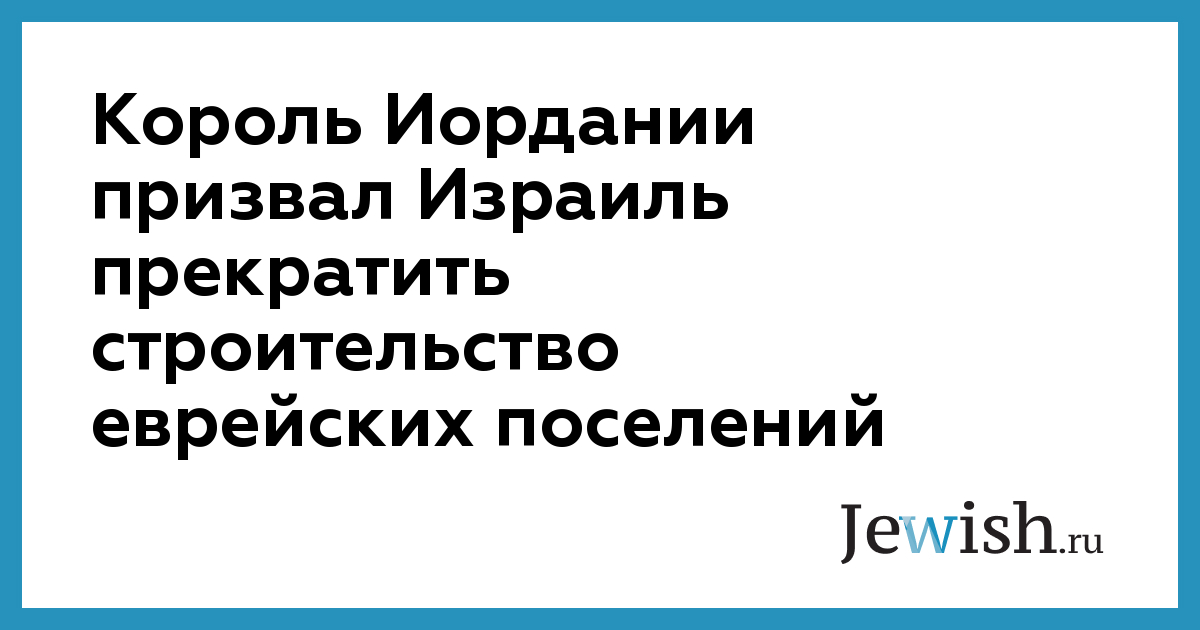 Король Иордании призвал Израиль прекратить строительство еврейских поселений