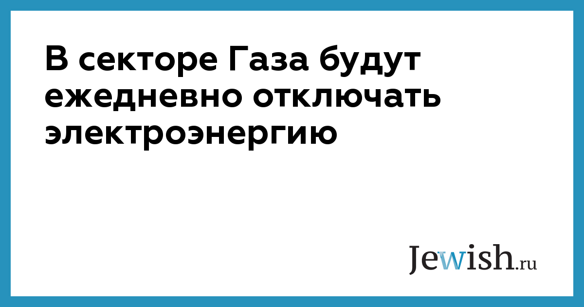 В секторе Газа начиная с воскресенья будут проводиться ежедневные отключения электроэнергии на восемь часов.