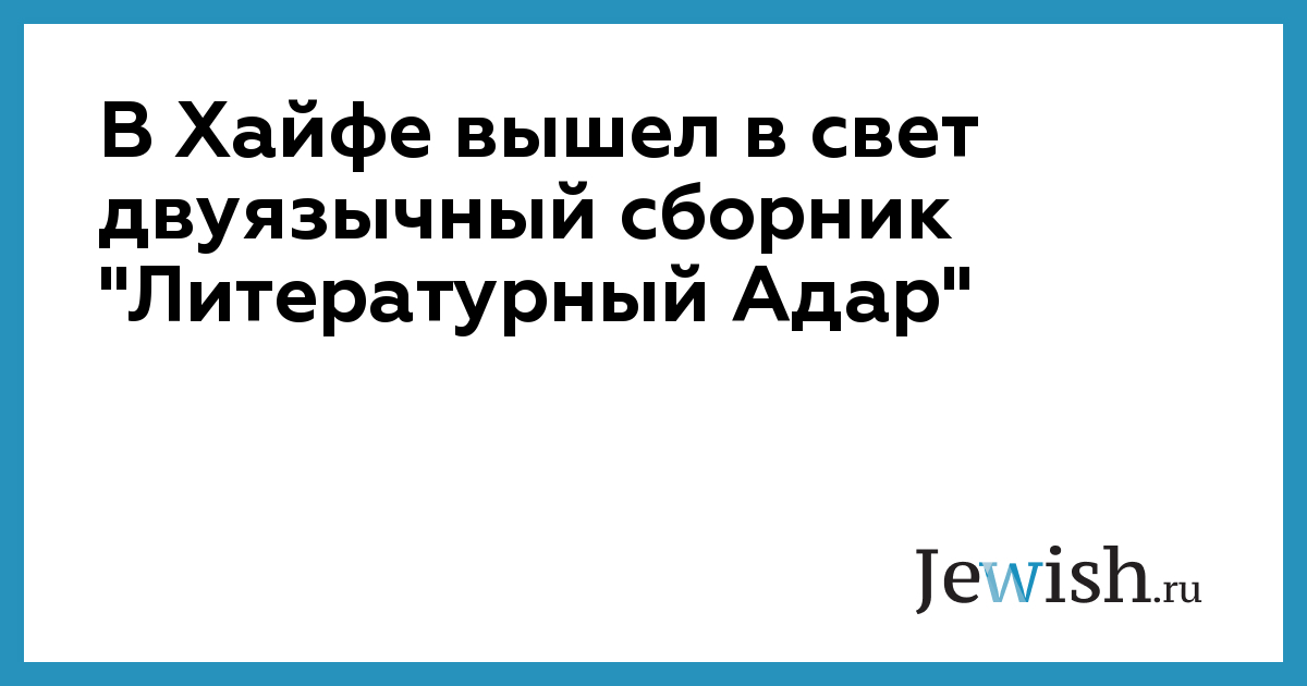 Около ста двадцати произведений девятнадцати хайфских авторов собрались под одной «крышей» вышедшего недавно в свет альманаха «Адар». Книга представляет литературный Адар на иврите и русском сквозь призму произведений писателей и поэтов, проживающих и работающих в районе Адар, сообщили в пресс-службе мэрии израильского гоода Хайфа.