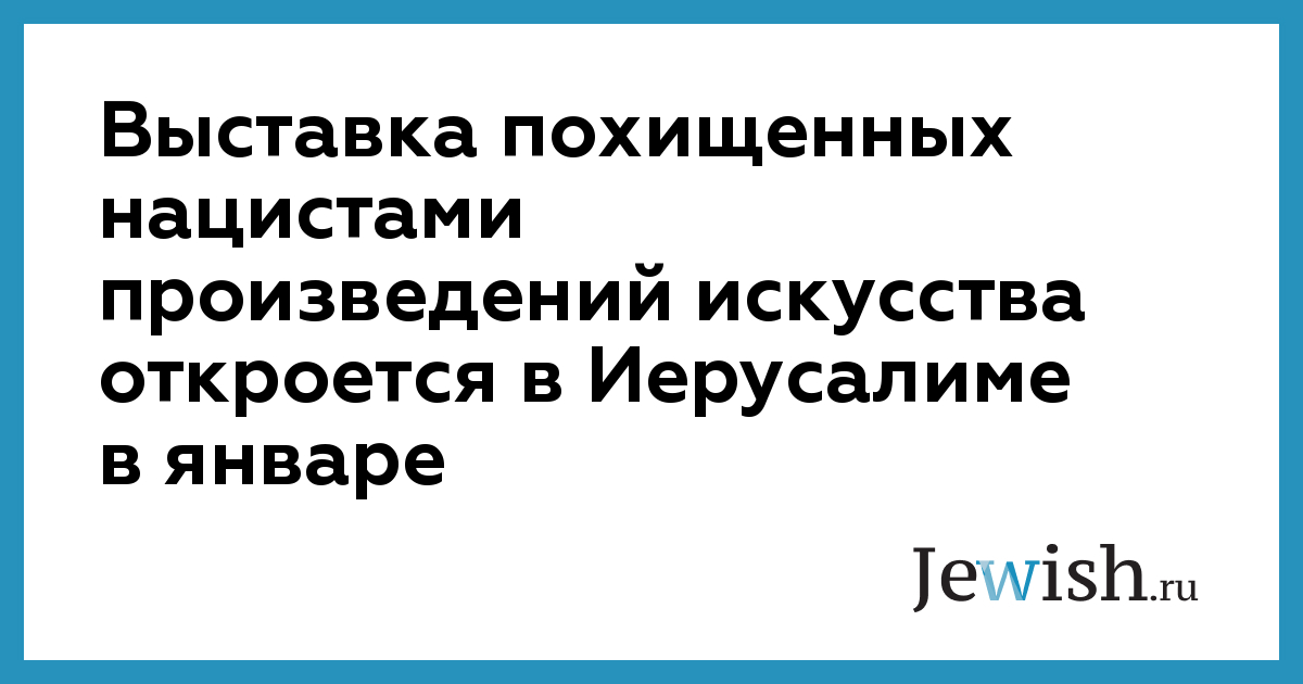 Выставка похищенных нацистами произведений искусства откроется в Иерусалиме в январе