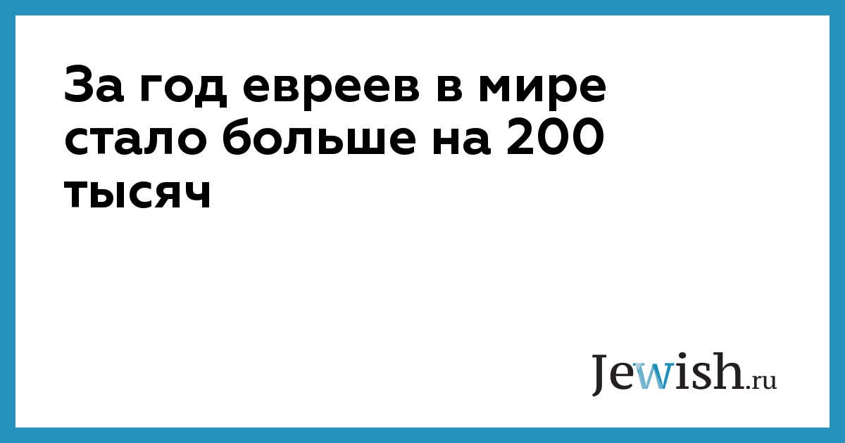 По сообщению Института планирования политики еврейского народа, численность еврейского населения в мире составляет 13,2 миллиона человек, сообщает "Седьмой канал". Таким образом, евреев, нас по сравнению с 2006 годом стало на 200 тысяч человек больше.