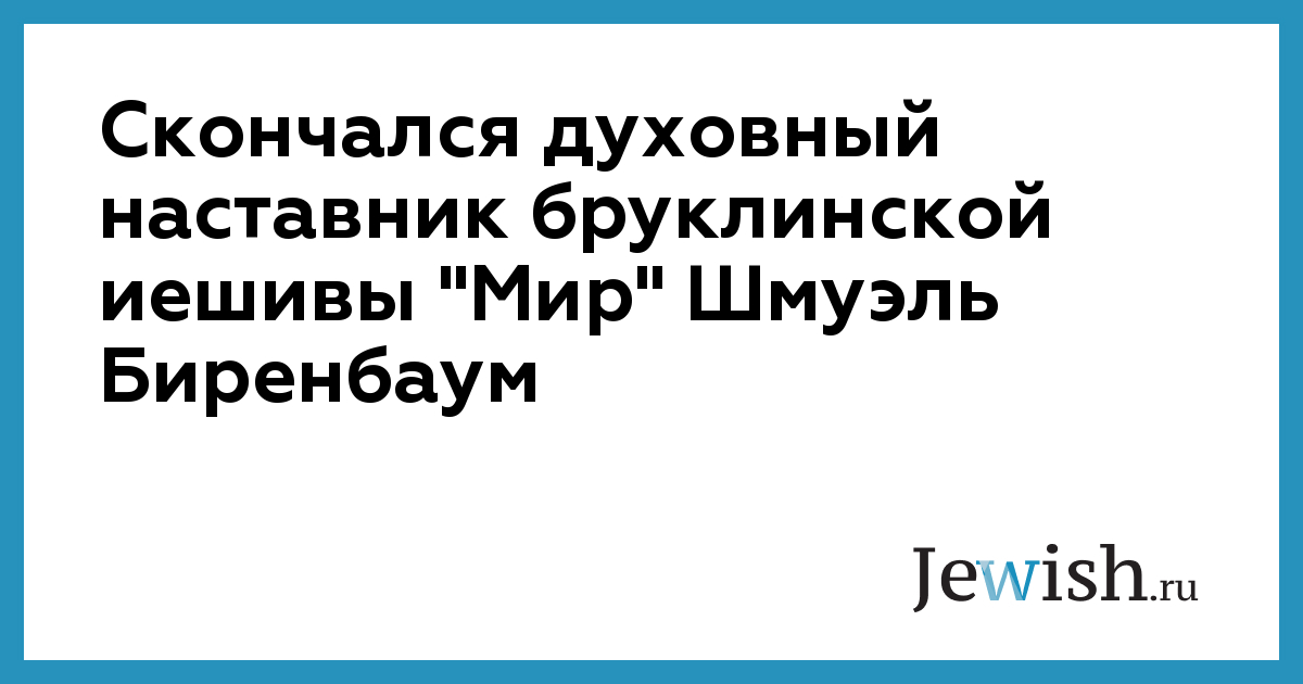 Легендарный раввин, толкователь Талмуда Шмуэль Биренбаум, на протяжени 50 лет возглавлявший иешиву "Мир" в Бруклине, скончался в воскресенье от рака в возрасте 87 лет, сообщает газета "Los Angeles Times".