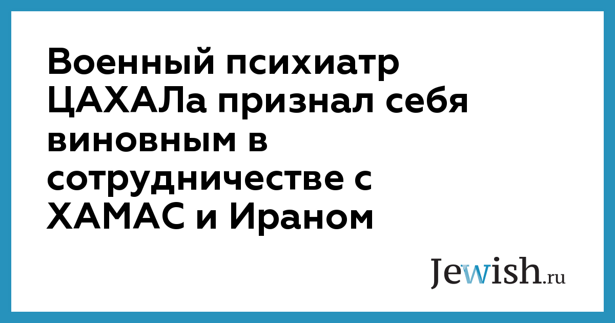 Военный психиатр ЦАХАЛа признал себя виновным в сотрудничестве с ХАМАС и Ираном