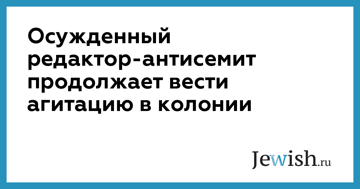 Осужденный редактор-антисемит продолжает вести агитацию в колонии