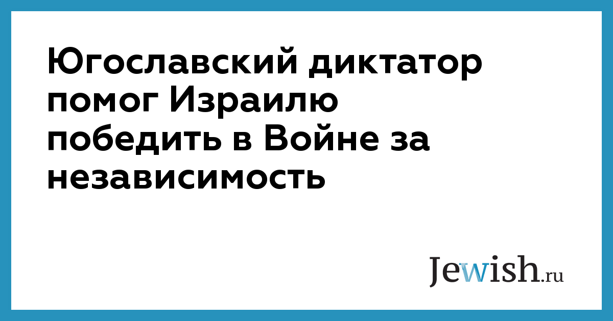 Югославский диктатор помог Израилю победить в Войне за независимость