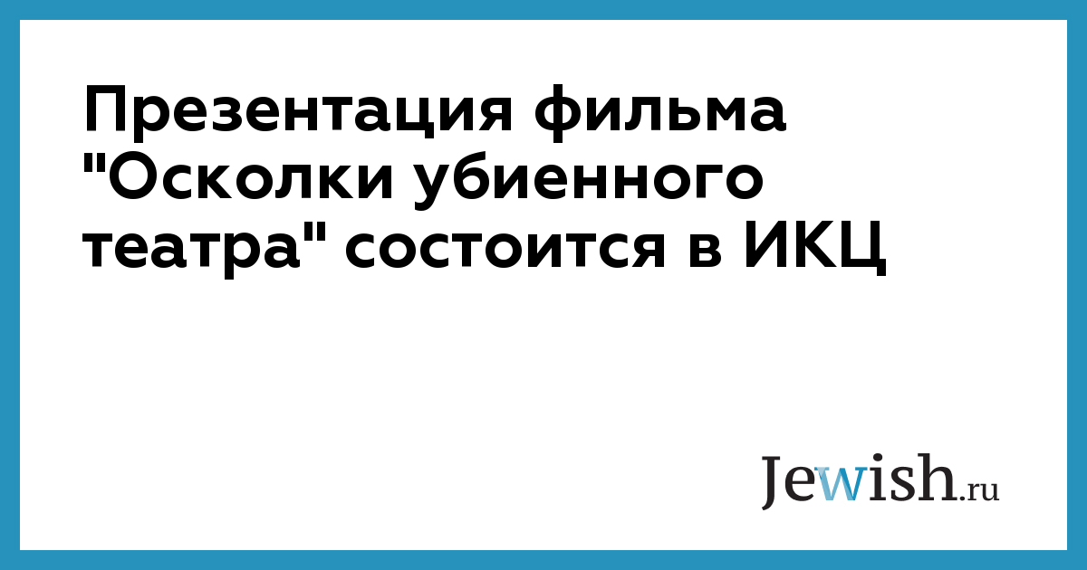 Презентация фильма "Осколки убиенного театра" состоится в ИКЦ