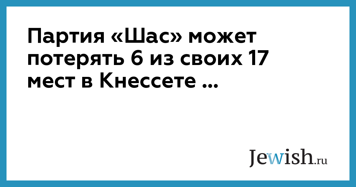 Партия «Шас» может потерять 6 из своих 17 мест в Кнессете ...
