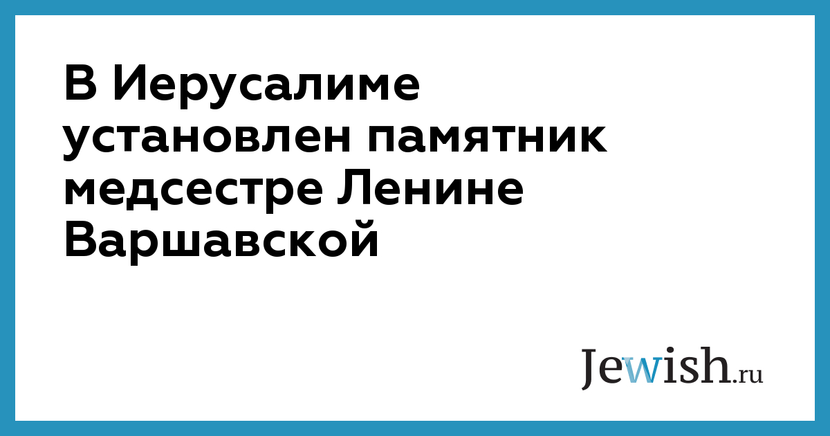 В Иерусалиме установлен памятник медсестре Ленине Варшавской