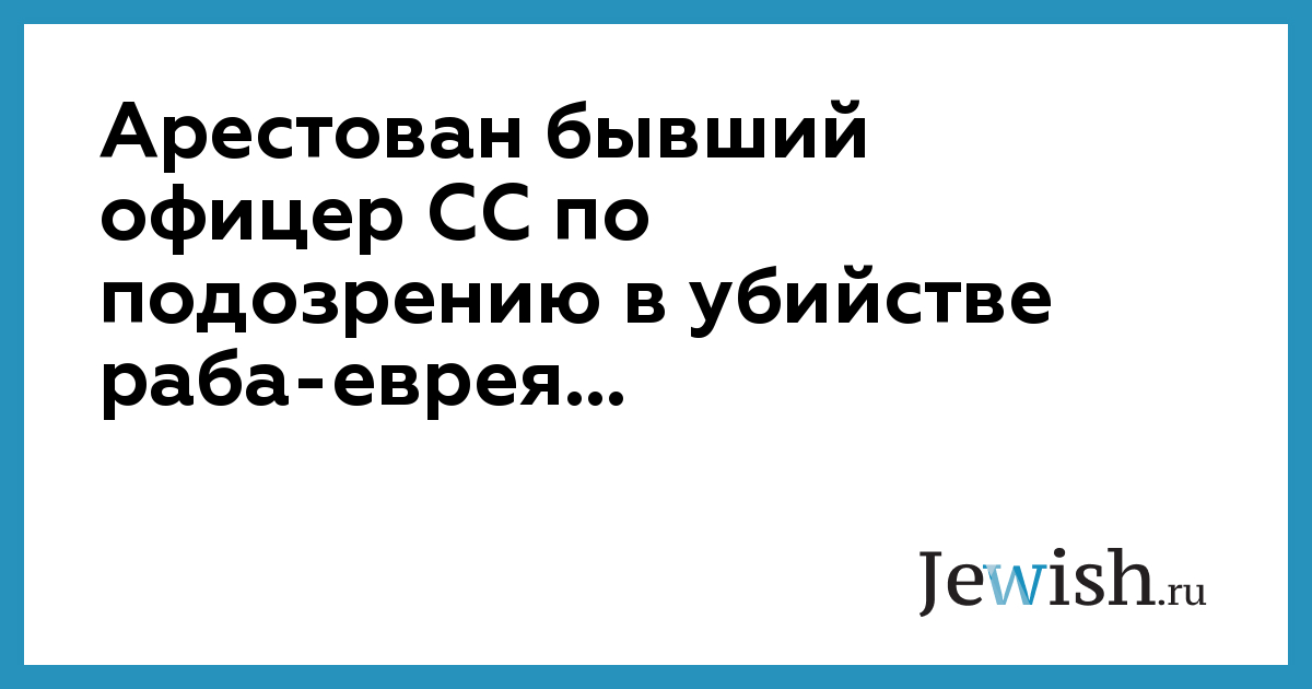 Арестован бывший офицер СС по подозрению в убийстве раба-еврея...
