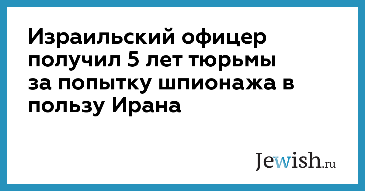 Израильский офицер осужден на 5 лет тюремного заключения за попытку шпионажа в пользу Ирана, передает ИТАР-ТАСС. Приговор по делу вынес сегодня тель-авивский окружной суд.