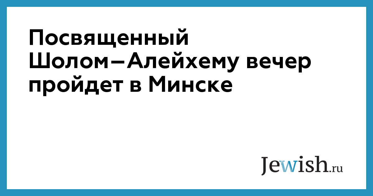 Посвященный Шолом–Алейхему вечер пройдет в Минске