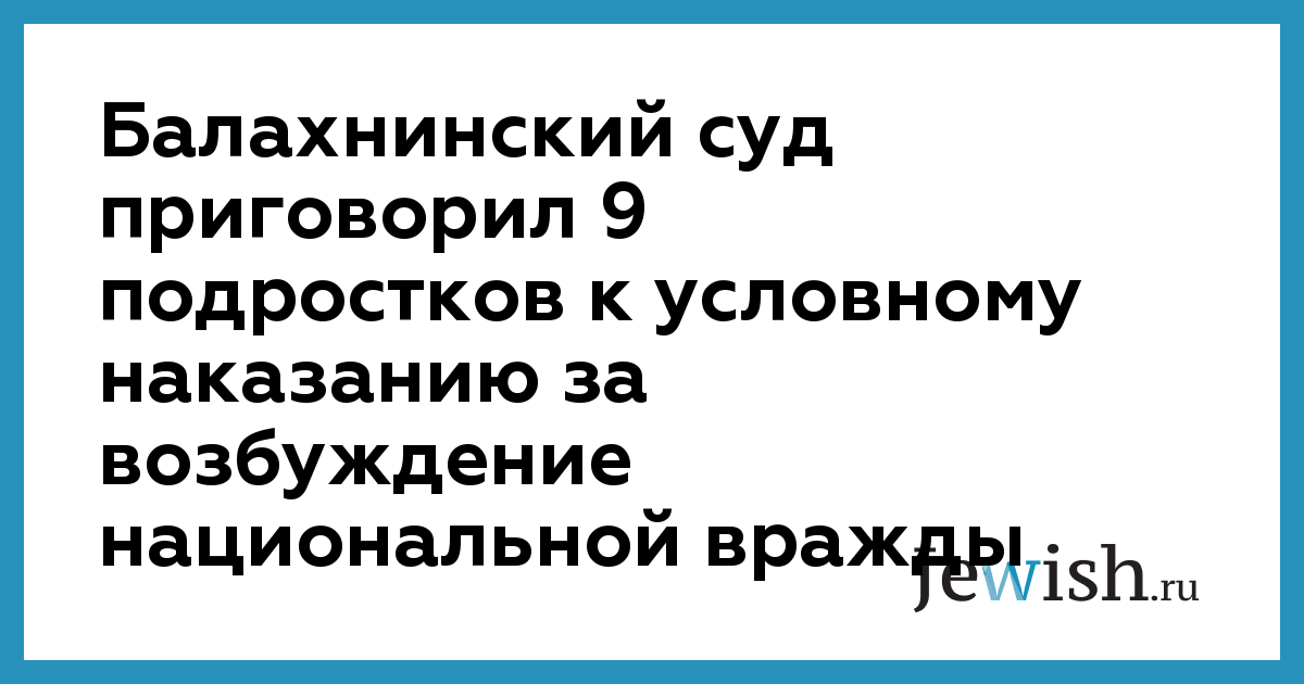 Суд Балахны (Нижегородская область) на заседании 29 декабря приговорил к условному наказанию девятерых подростков по обвинению в возбуждении национальной, расовой и религиозной вражды. Об этом агентству "НТА-Приволжье" сообщила заместитель прокурора Балахнинского района Надежда Косарева.