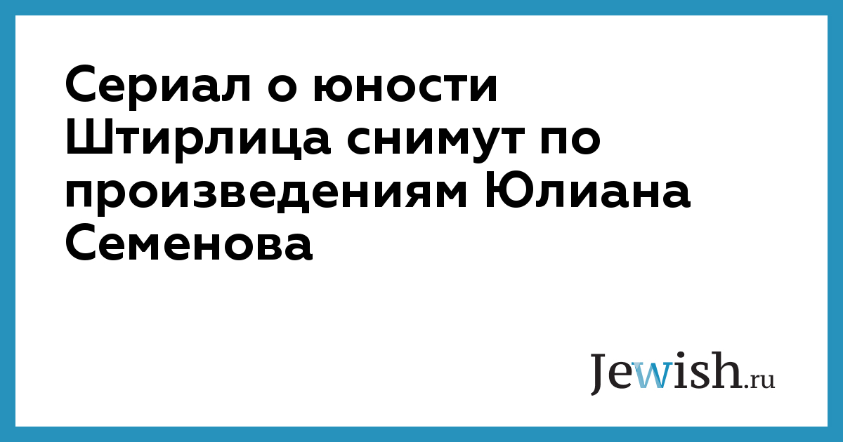 Сериал о юности Штирлица снимут по произведениям Юлиана Семенова