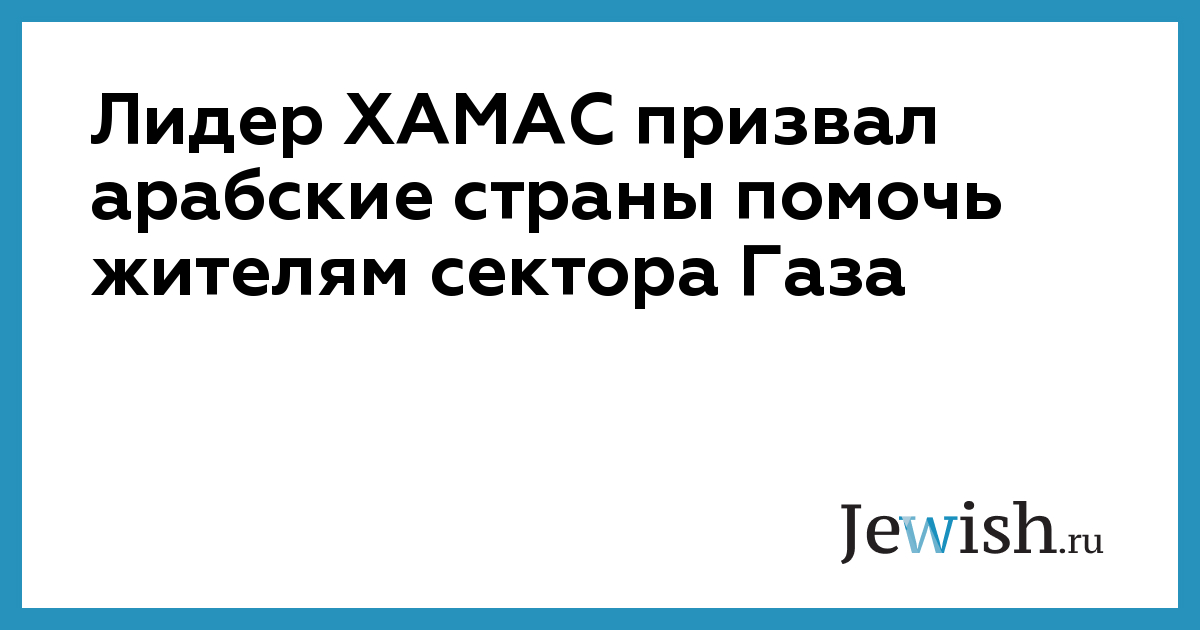 Лидер ХАМАС призвал арабские страны помочь жителям сектора Газа