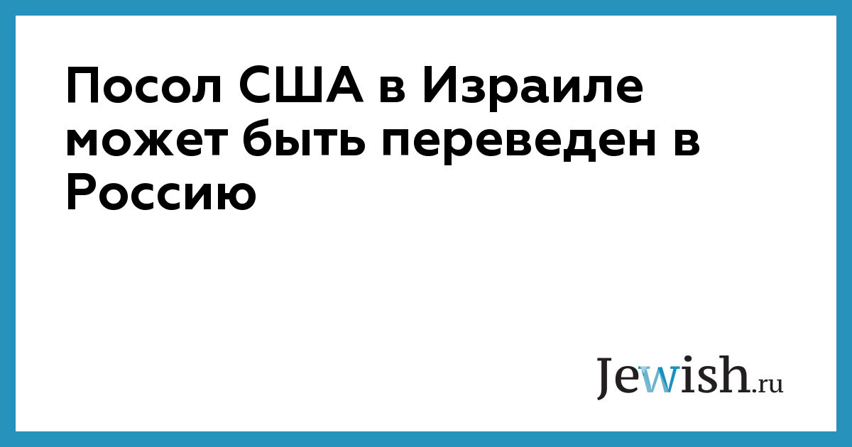 Посол США в Израиле может быть переведен в Россию