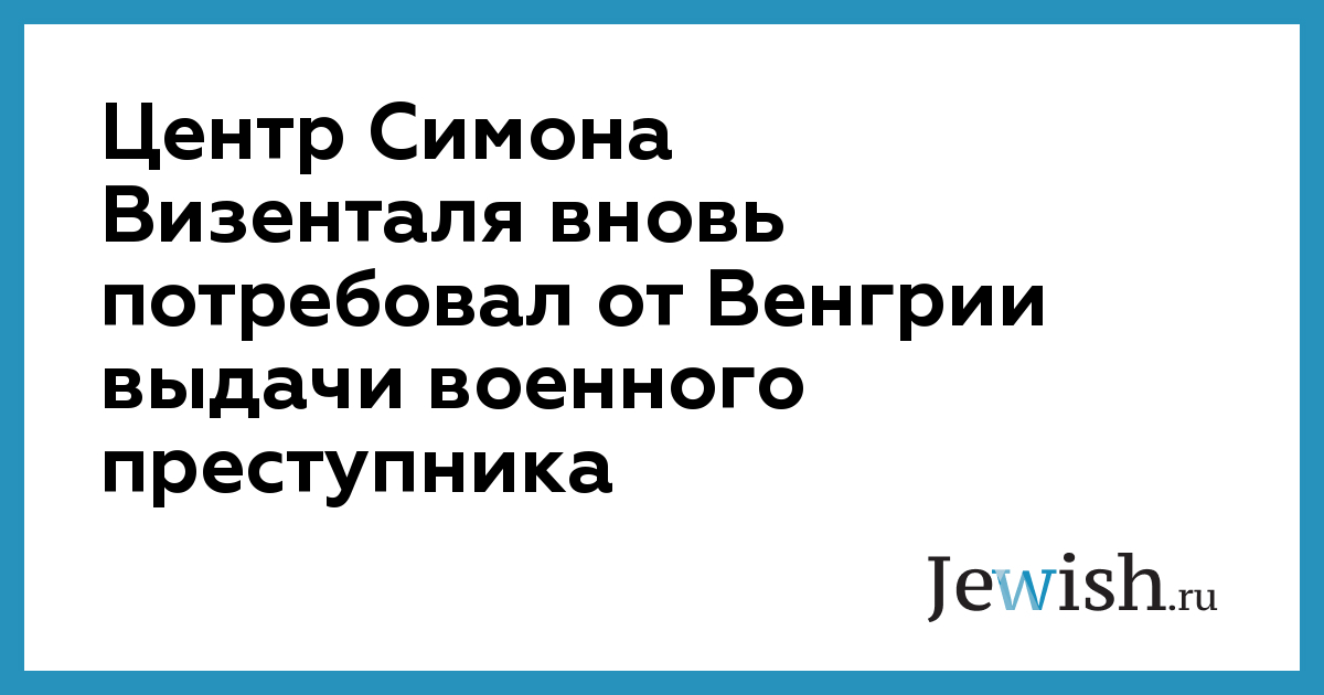 Центр Симона Визенталя в Лос-Анджелесе повторно поставил перед Венгрией вопрос о немедленной передаче в руки правосудия одного из главных военных преступников. Несмотря на предъявленные более 60 лет назад обвинения в участии в массовых убийствах во время Второй мировой войны, преступник так и не понес наказания за содеянное.