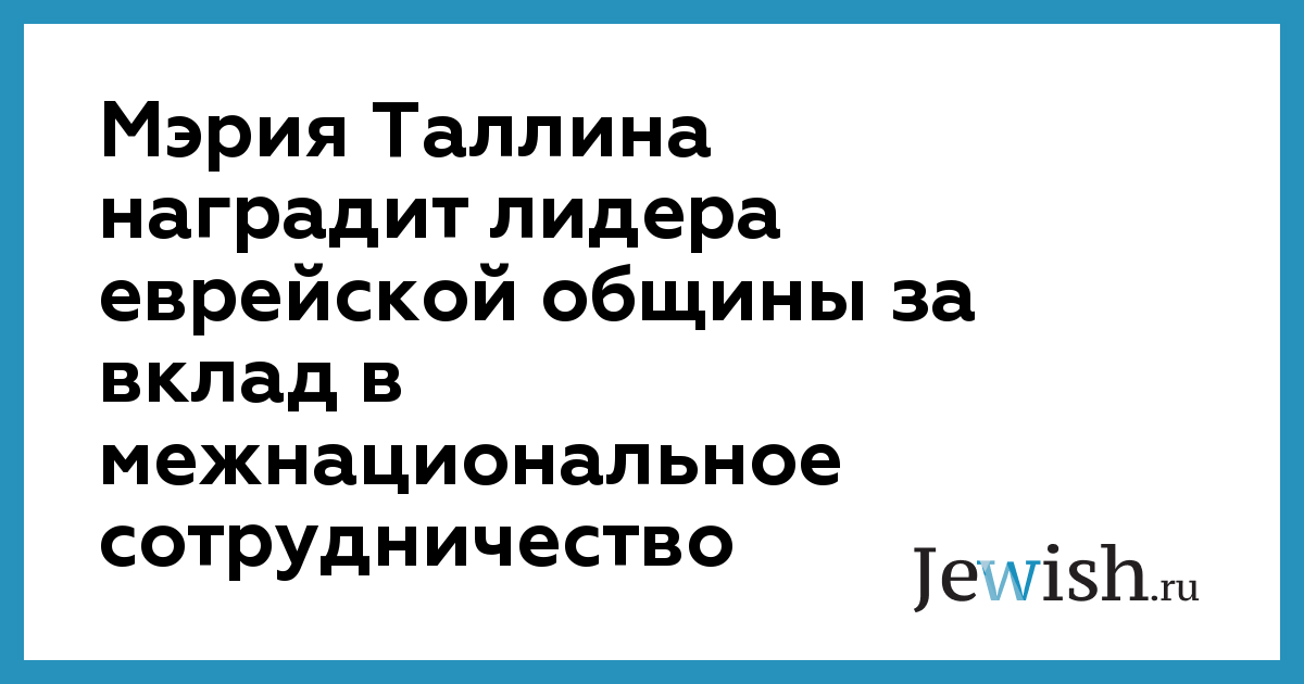 Мэрия Таллина наградит лидера еврейской общины за вклад в межнациональное сотрудничество