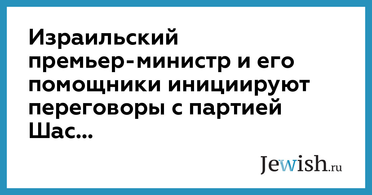 Израильский премьер-министр и его помощники инициируют переговоры с партией Шас...