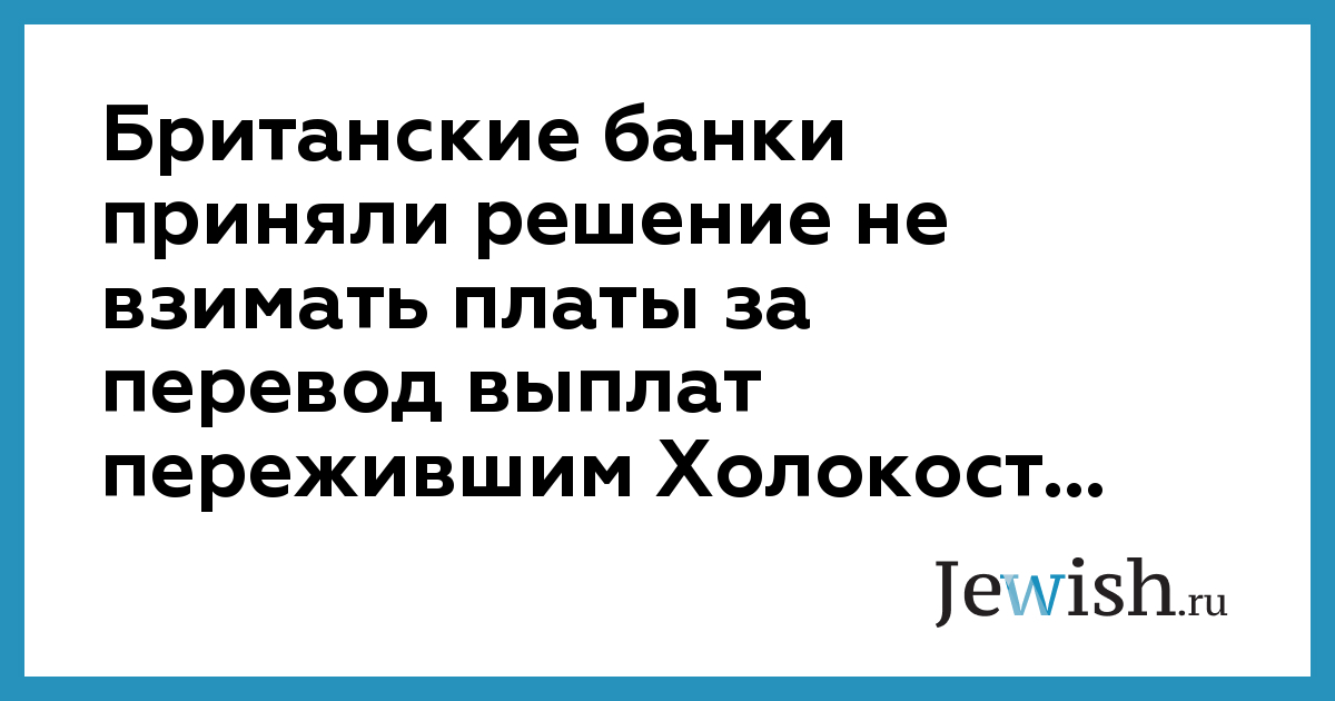 Британские банки приняли решение не взимать платы за перевод выплат пережившим Холокост...
