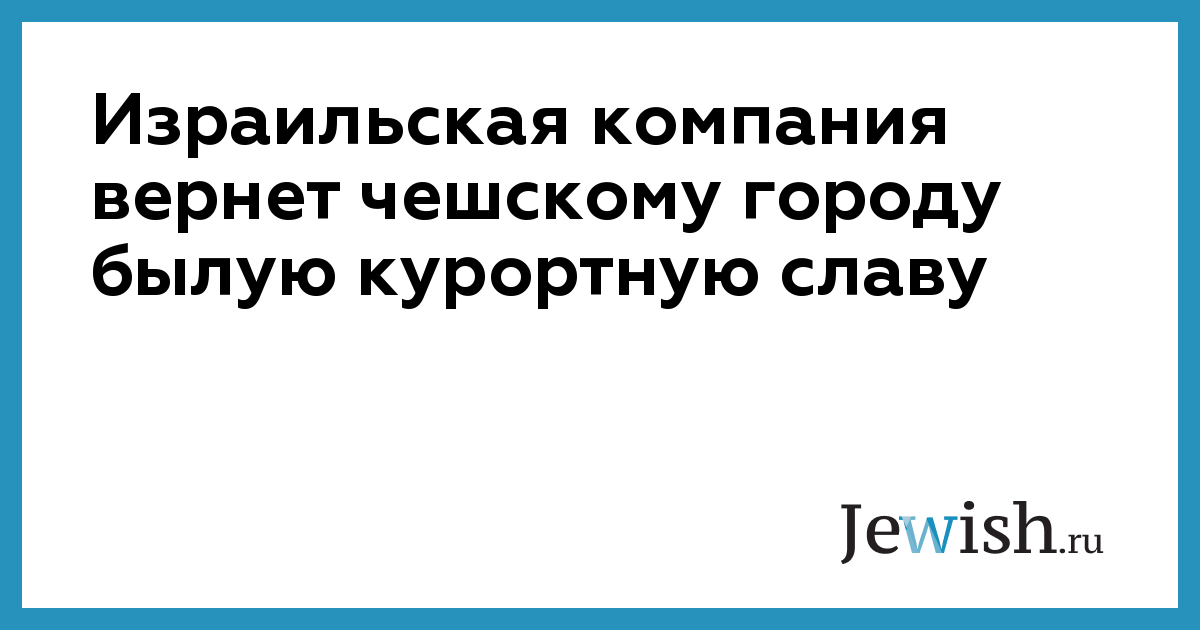 Израильская компания вернет чешскому городу былую курортную славу