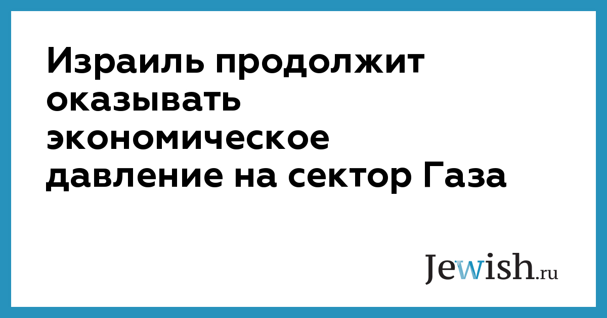 Израиль продолжит экономическое давление на сектор Газа, дополняющее военные операции против палестинских боевиков.