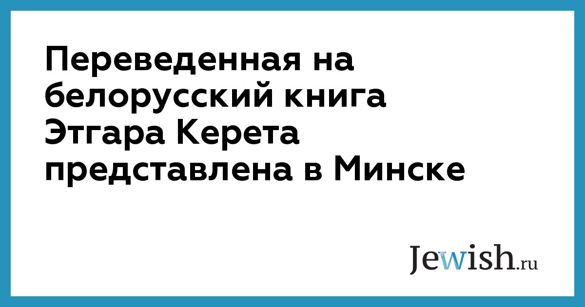 На XV Минской международной книжной выставке-ярмарке "Книги Беларуси-2008", гостем которой является в этом году государство Израиль, представлен переведенный с иврита на белорусский язык сборник рассказов Этгара Керета "Кіроўца аўтобуса, які хацеў стаць Богам". Об этом сообщает БЕЛТА.