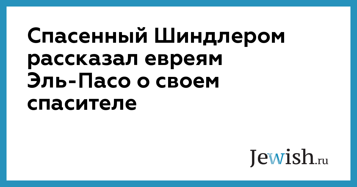 Спасенный Шиндлером рассказал евреям Эль-Пасо о своем спасителе