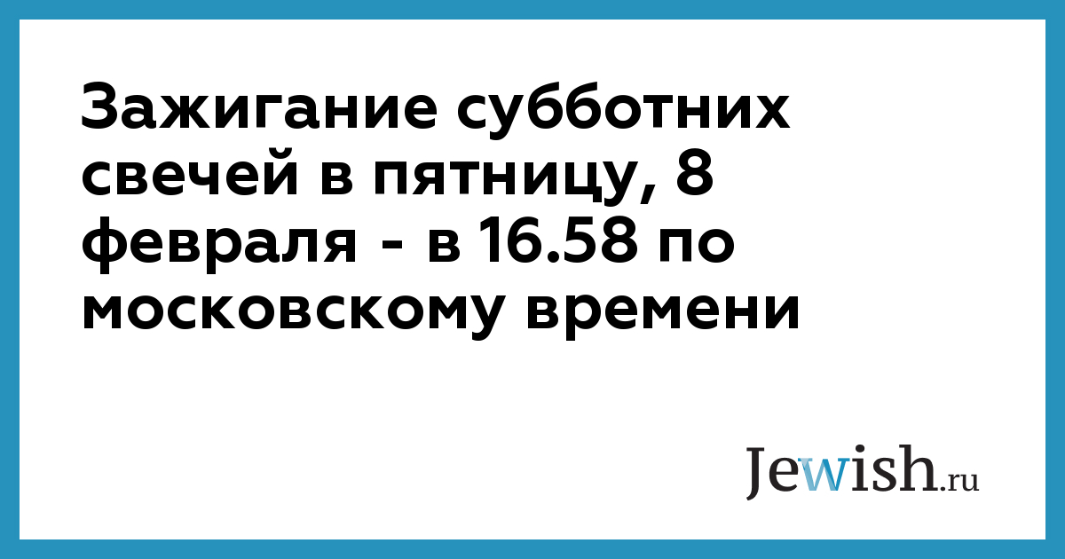 Зажигание субботних свечей в пятницу, 8 февраля — в 16.58 по московскому времени