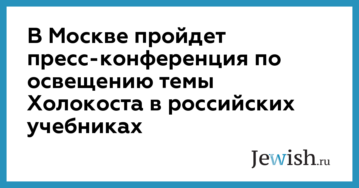 В среду, 13 февраля, в 14:00 в центральном офисе агентства «Интерфакс» (ул. 1-я Тверская-Ямская, д. 2) пройдет пресс-конференция на тему: «История евреев России и тема Холокоста в современных российских учебниках для средней школы: искажение фактов, тенденциозность и антисемитизм».