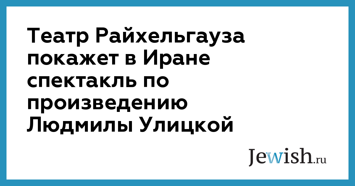 Театр Райхельгауза покажет в Иране спектакль по произведению Людмилы Улицкой