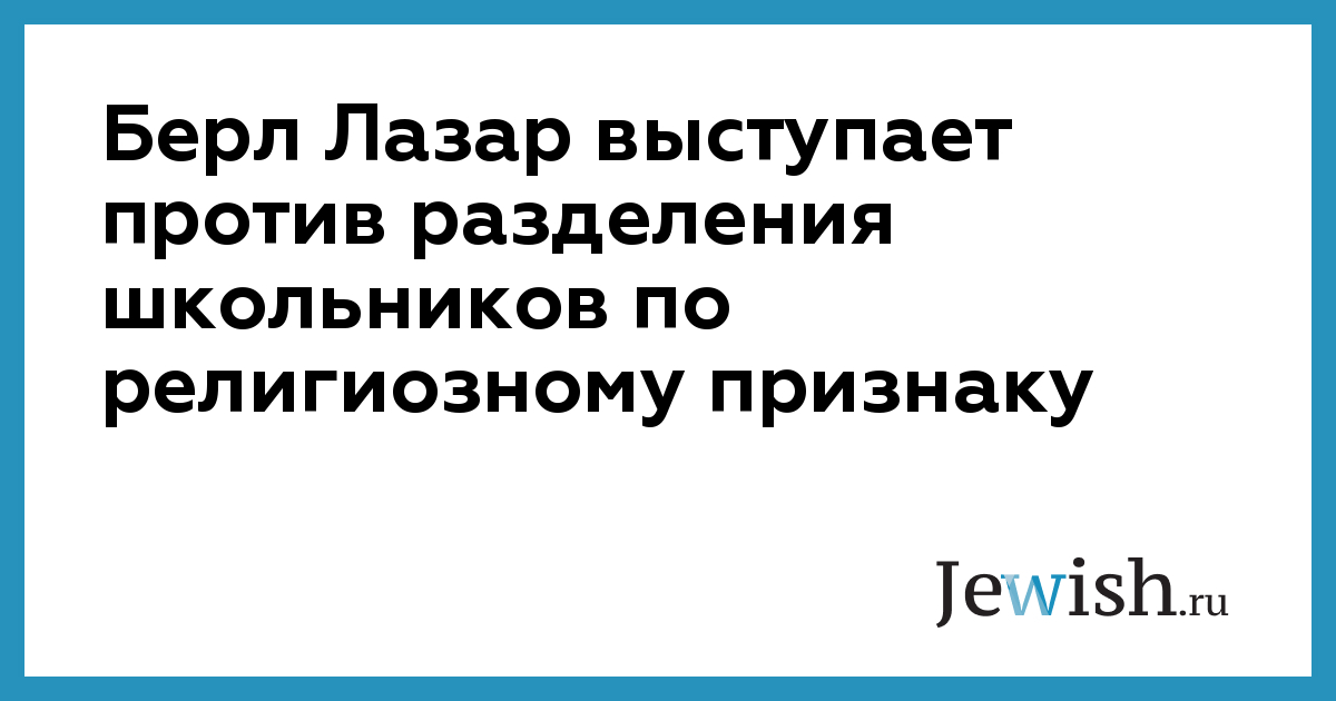Берл Лазар выступает против разделения школьников по религиозному признаку