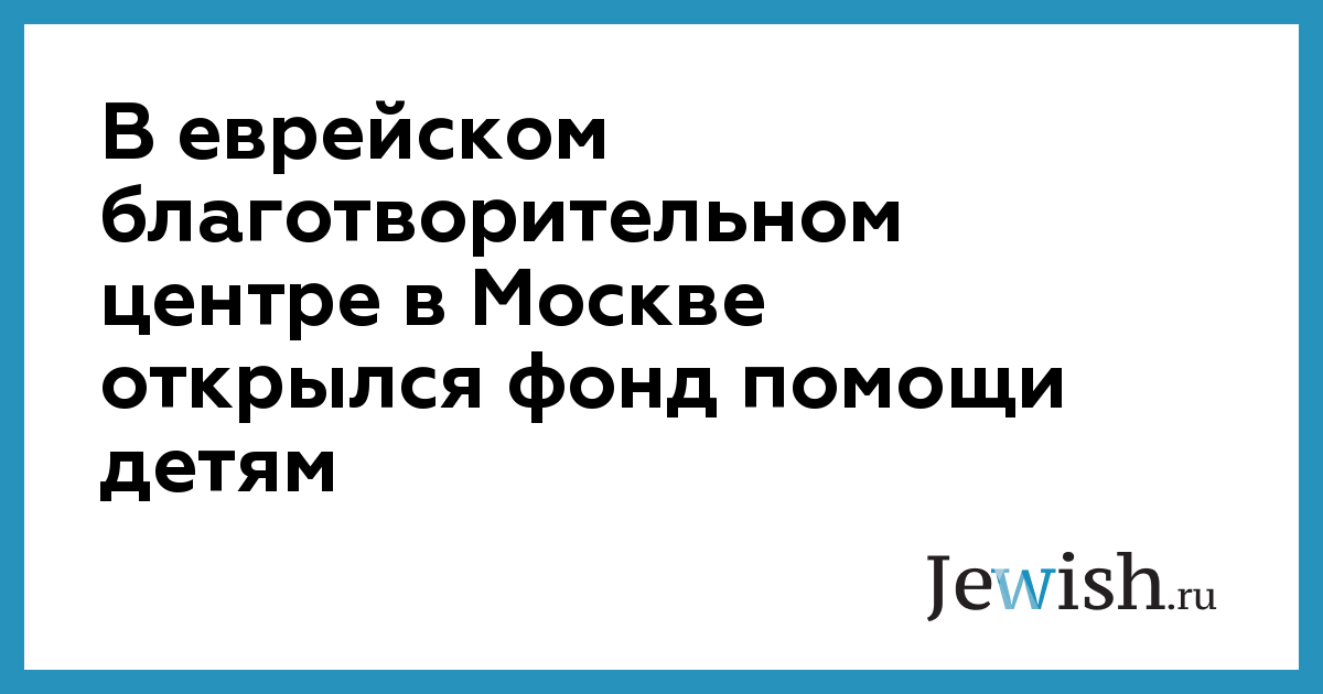 В еврейском благотворительном центре в Москве открылся фонд помощи детям