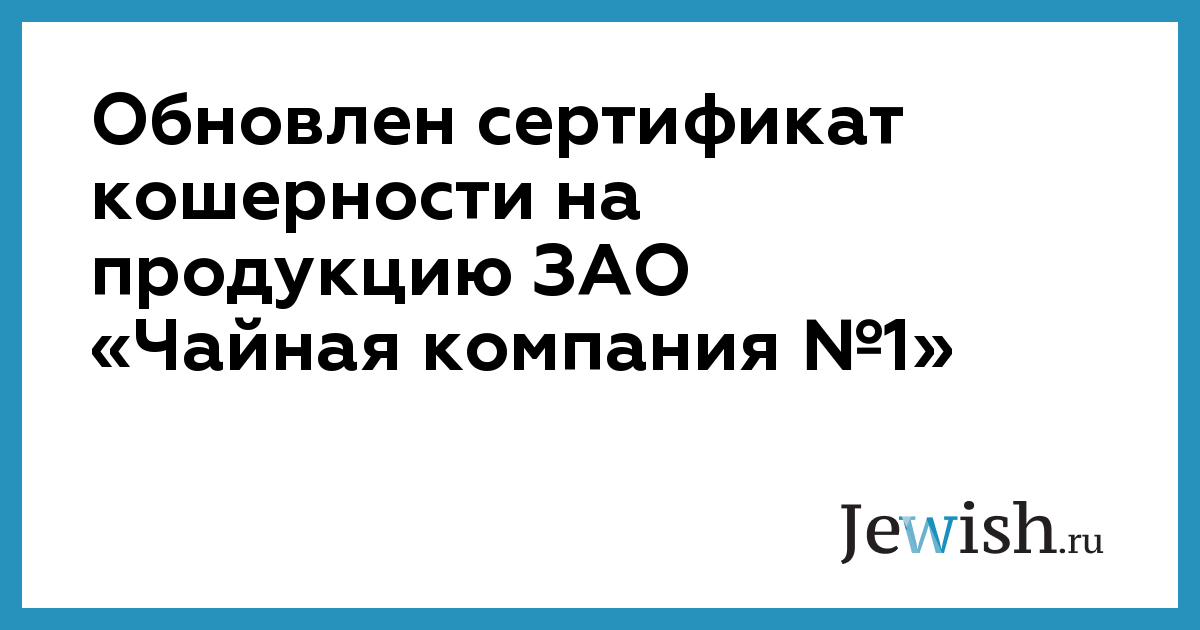 Обновлен сертификат кошерности на продукцию ЗАО «Чайная компания №1»