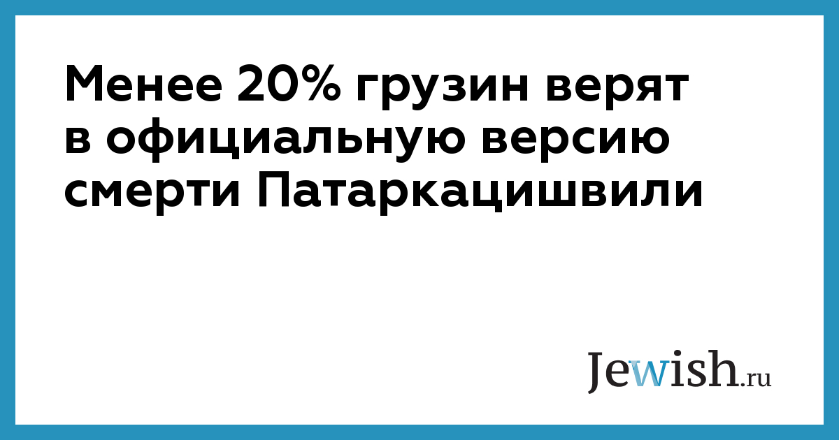 Всего 19,6% грузин верят в естественную смерть в Лондоне 52-летнего олигарха Бадри Патаркацишвили — от сердечного приступа, передает корреспондент газеты ВЗГЛЯД.