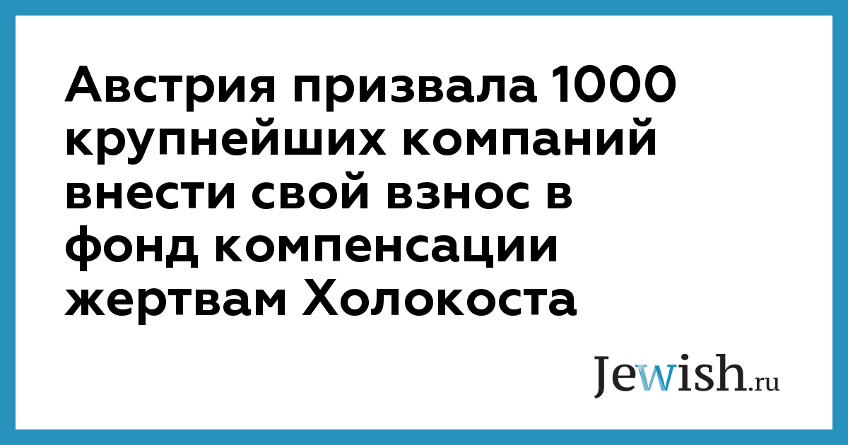 Австрия призвала 1000 крупнейших компаний внести свой взнос в фонд компенсации жертвам Холокоста