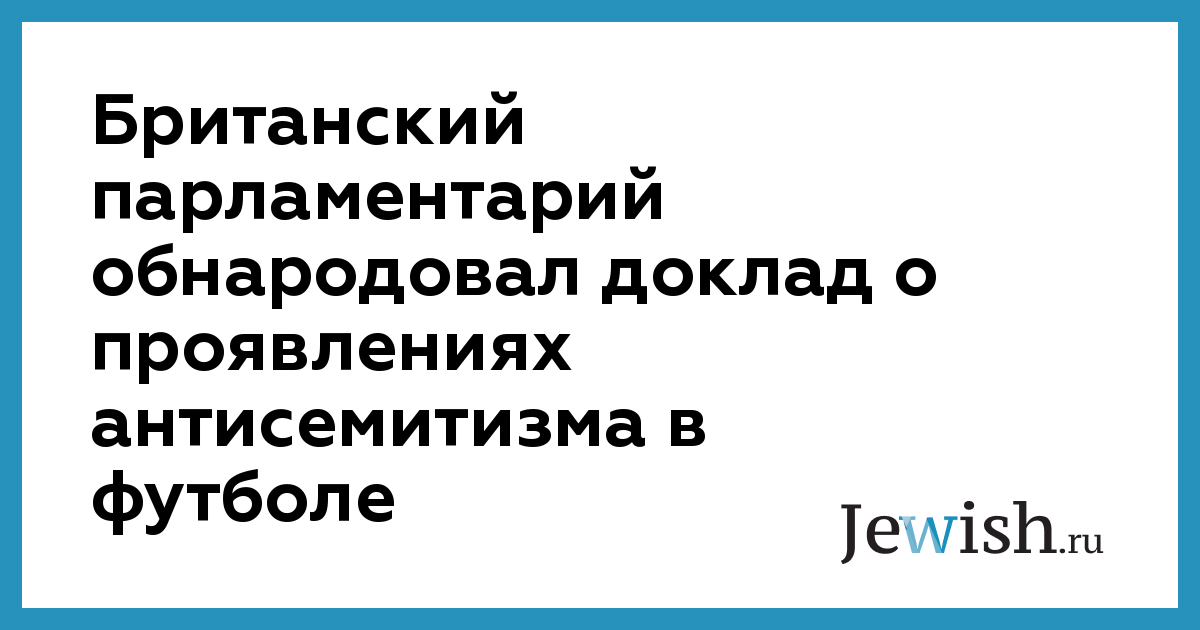 В своем докладе лейборист Манн, возглавляющий всепартийную парламентскую группу по борьбе с антисемитизмом, отмечает, что «древнейшая форма ненависти – антисемитизм – продолжает показывать свое уродливое лицо в мире футбола».