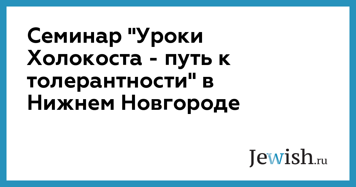 Семинар "Уроки Холокоста — путь к толерантности" состоится в Нижнем Новгороде.