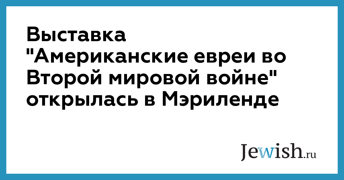 Выставка "Американские евреи во Второй мировой войне" открылась в Мэриленде