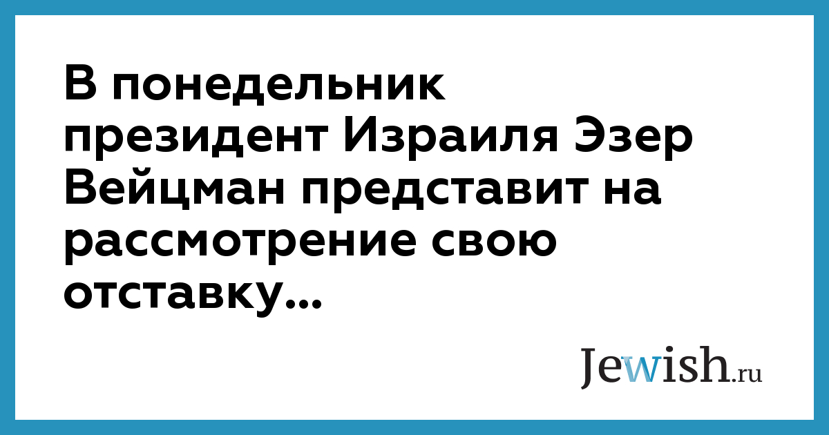 В понедельник президент Израиля Эзер Вейцман представит на рассмотрение свою отставку...