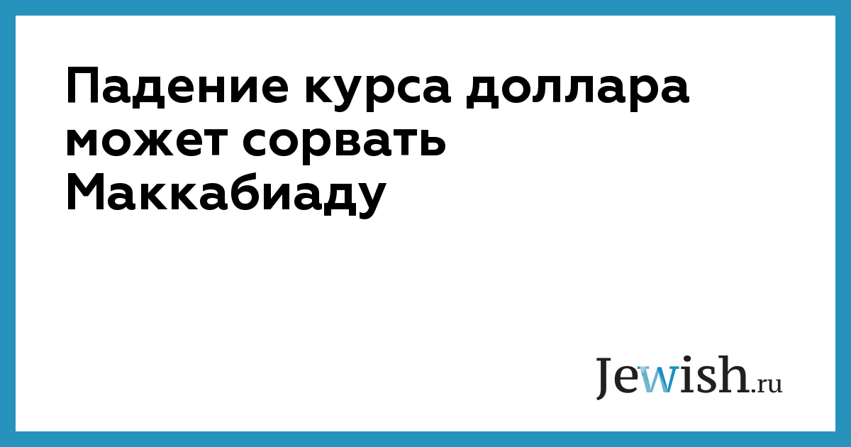 Руководство организационного комитета 18-й Маккабиады (так называемых "Всемирных еврейских олимпийских игр") сообщило, что падение курса доллара может привести к отмене соревнований.